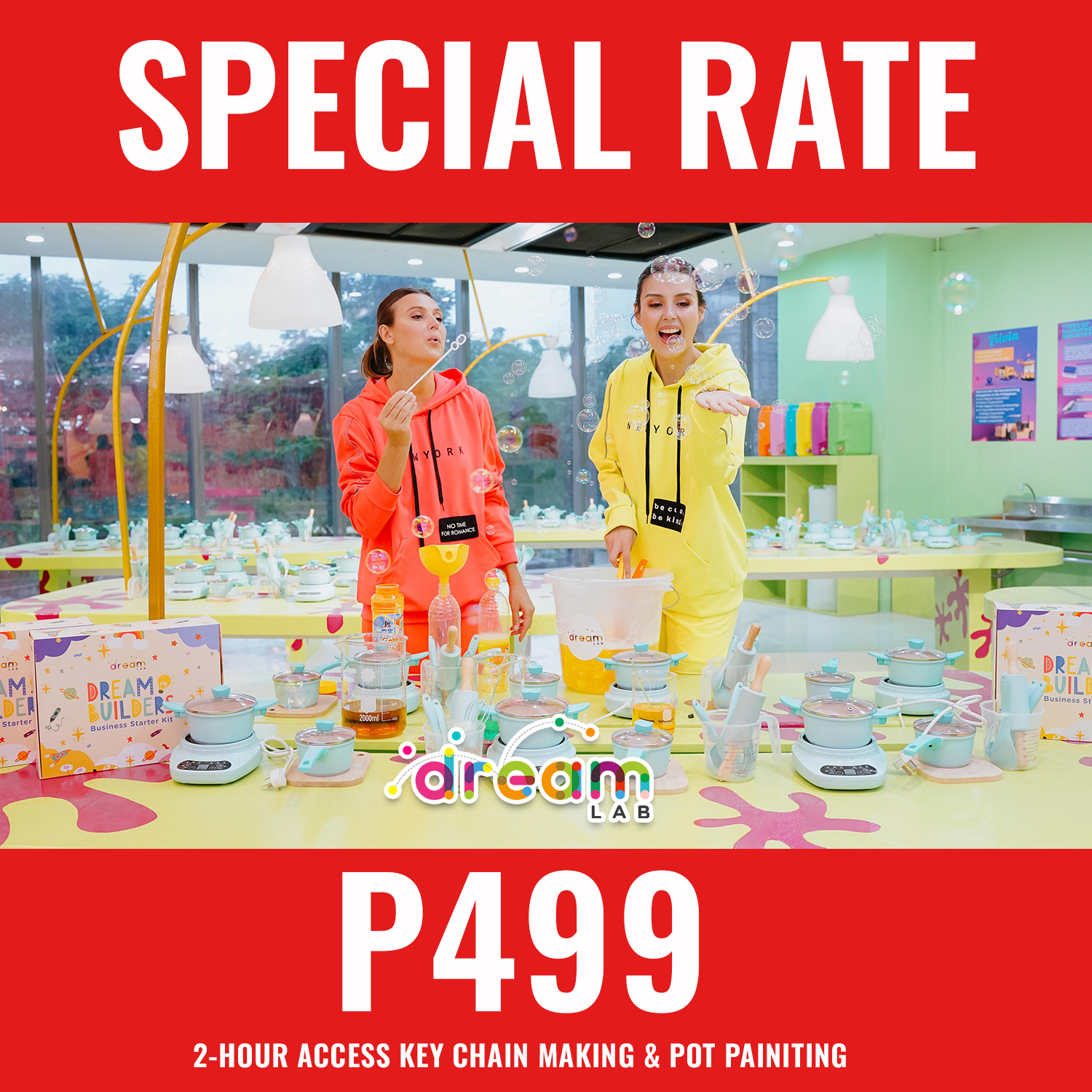 Enjoy unlimited entry for one month with exclusive activities on your first visit, including Pizza Making, and creative perks on the next, like pot painting and keychain making! Guardians can join for PHP 1,500 each (up to 2)—ensuring a safe and fun experience for dreamers aged 13 and below.