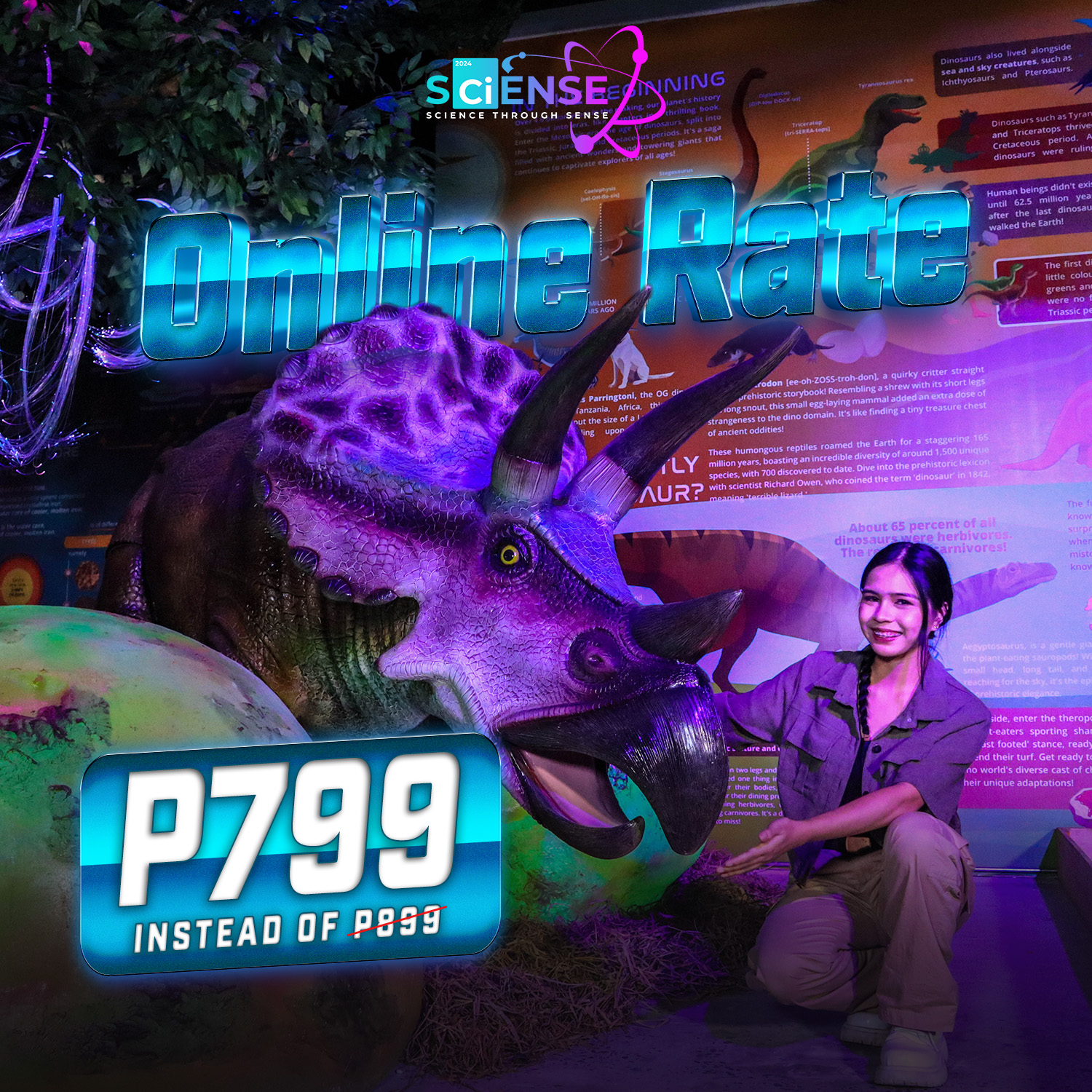 Enjoy a 2-hour interactive journey where you’ll explore the wonders of science through the power of your senses. Walk among lifelike animatronic dinosaurs in Sauro Space, explore the solar system in Stellar Space, discover human anatomy in Sense Space, meet wax figures of legendary scientists in Summit Space, and more! Offer valid until January 31, 2025 only.